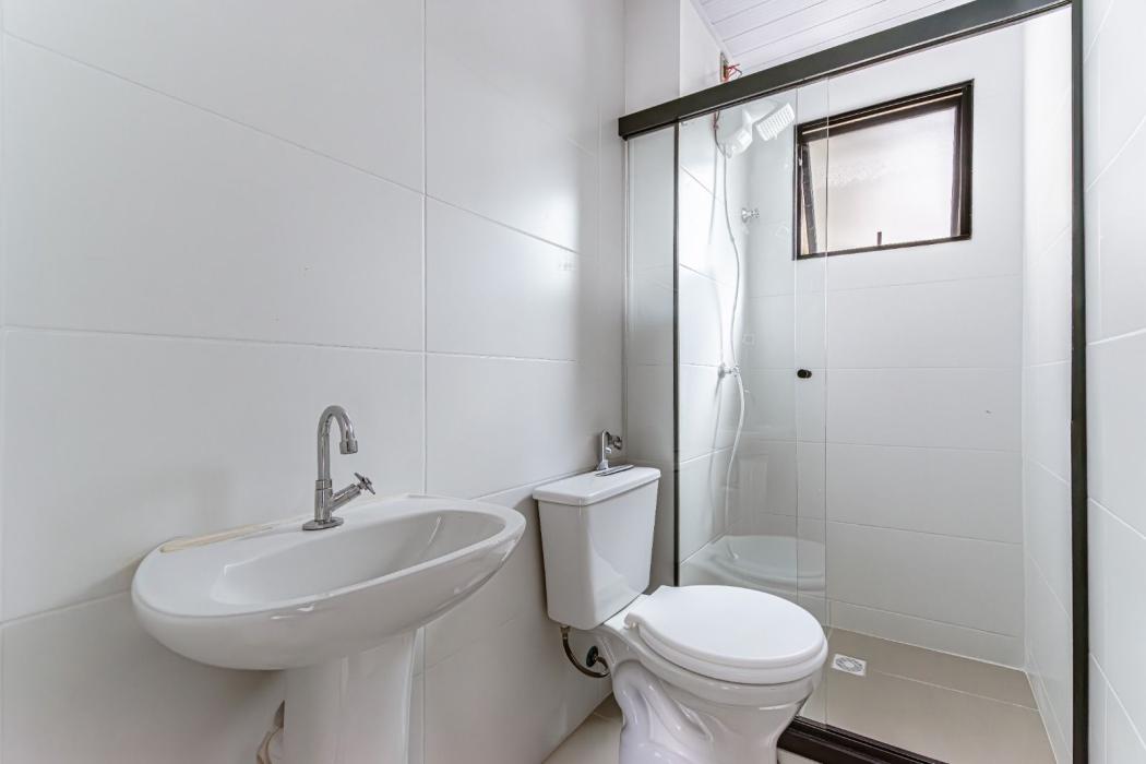 Banheiro com box de vidro instalado